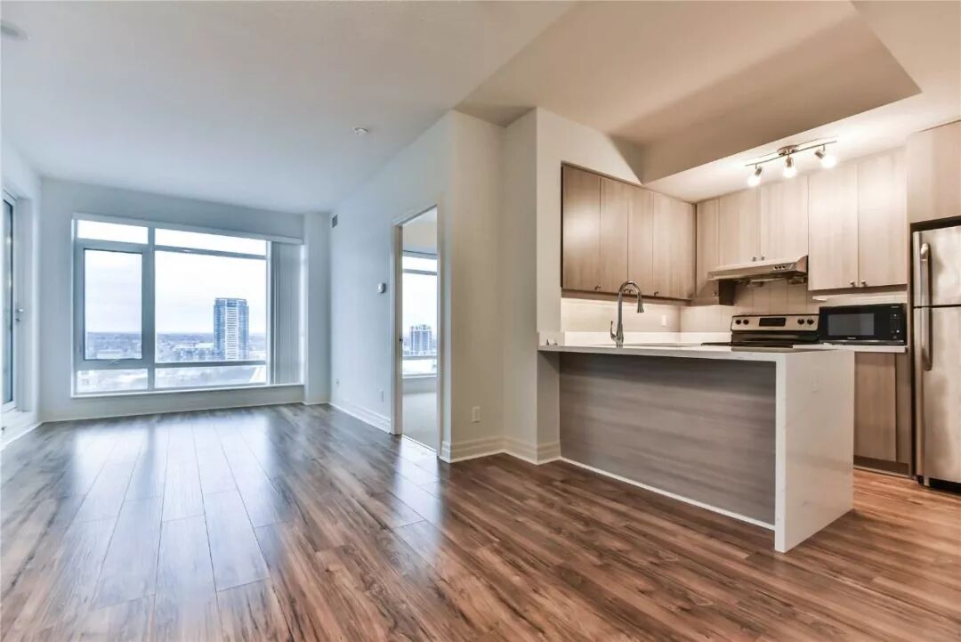 万锦市中心繁华地段兩睡房双浴室豪华公寓,開放式户型位於頂樓之下,可眺望遠景观景阳台。诸多升级:全屋实木地板,9呎高楼底,厨房带石英厨台及防水玻璃墙面,客厅及主卧均可出入阳台。近万锦市中心,商场,超市,餐厅,电影院,巴士,坐落于Hwy7沿线。生活舒适,交通便利。